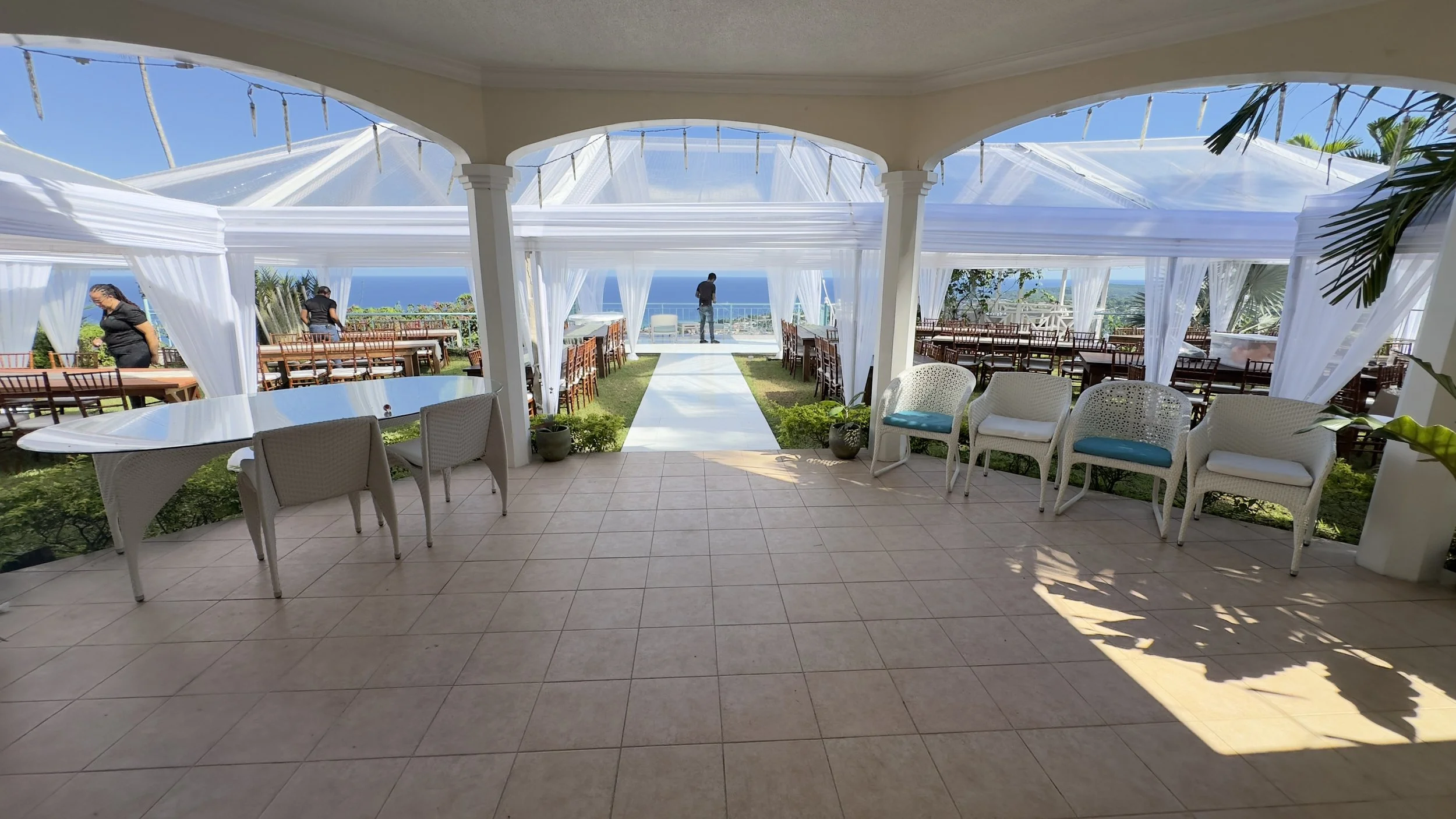Located at the top of Ocho Rios in Ridge Estates. Perfect for over the sea vows or place to party all night long as a newly married couple.